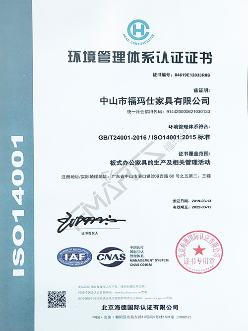 福瑪仕14001環(huán)境管理體系認(rèn)證證書